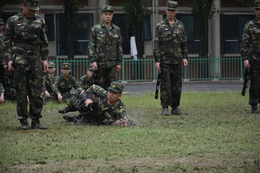 5月16日,士官生大队在南校区冒雨组织开展了以“会讲动作要领、会做示范动作、会组织训练,会做思想工作”为主要内容的“四会教学”专业训练。