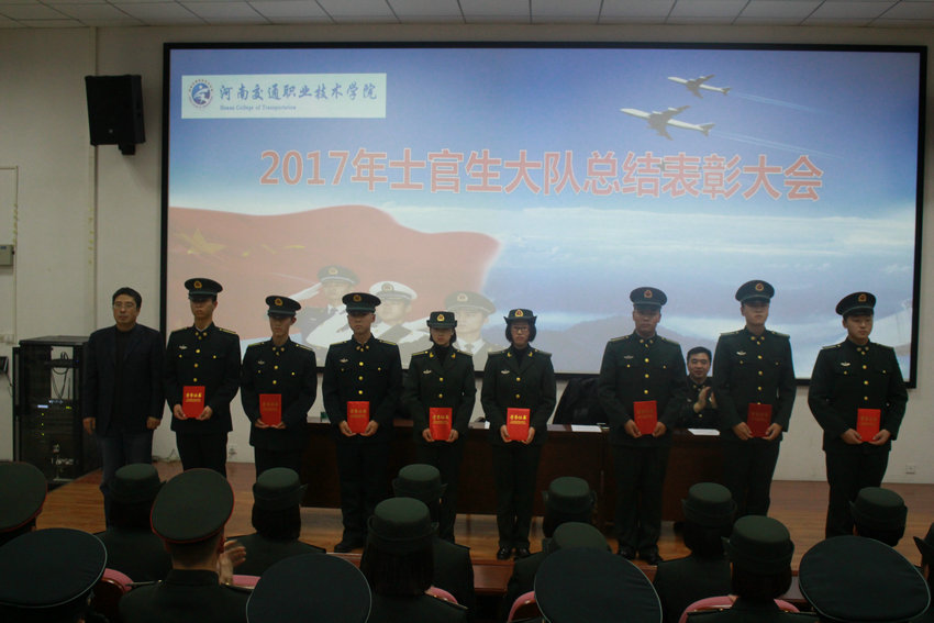12月22日下午,士官生大队在郑东校区物流学院报告厅组织召开2017年度总结表彰大会。学院工会主席张瑞春、学生工作处、士官生大队负责同志及东校区全体士官生参加会议。