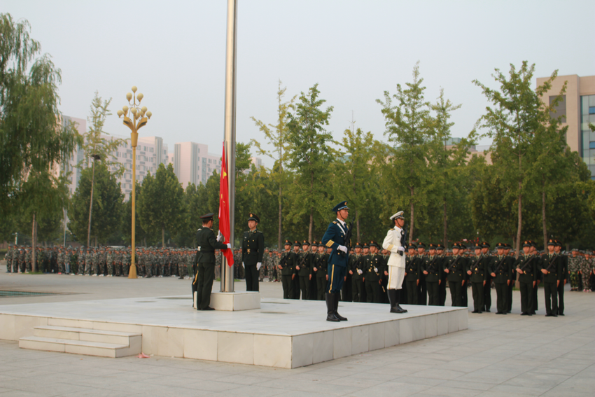全体新生在教官的带领下迅速集合完毕后,张震致词欢迎2017级新生入校,并宣布升旗仪式开始,升旗仪式由学院士官生大队组织进行。伴着威严雄壮的国歌,全体新生奏唱国歌并行注目礼,鲜艳的五星红旗缓缓升起,新生同学们的爱国热情、爱校激情再次被激发。随后,由院学生会主席王明乐同学向全体新生发出做好当代大学生的倡议,表示要坚定信仰,认真践行交院校训,切实把爱国爱校落实到实际的学习生活中。