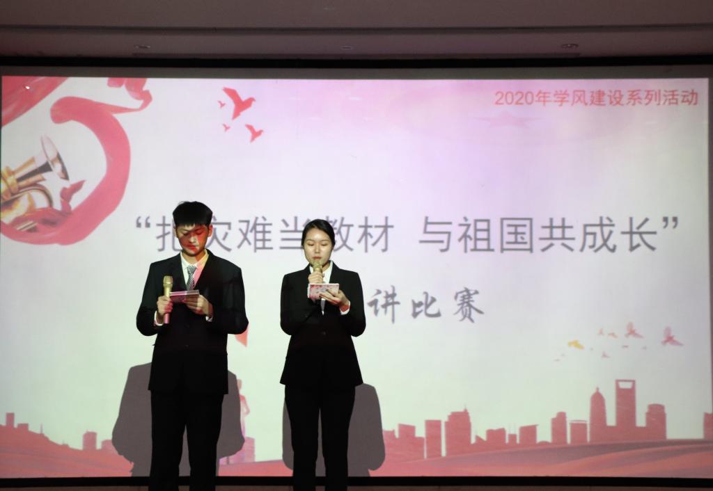 选手毋贤齐以《以风雪沧桑,鉴中华之光》为题目,引入主题,呼吁青年一代做有理想、有担当的有志青年……选手们虽然来自不同的地方、不同的院系,但他们都用自己的方式讲述了中华儿女抗击疫情的英勇事迹,向祖国诉说了那颗赤诚之心。经过激烈的角逐,来自士官生大队的段雅馨、商务旅游系的郁洋两位同学荣获一等奖。