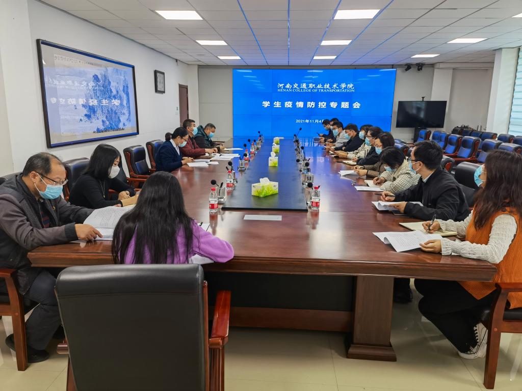 11月4日,学校在郑东校区四楼会议室召开学生疫情防控专题会,深入贯彻落实全省教育系统2021年秋冬季疫情防控工作视频会议精神,安排部署学校学生疫情防控工作。学生工作处相关负责人、各院系党总支书记、学管老师、校医院负责人、学工处相关负责同志参加会议,学生工作处处长张震主持会议。