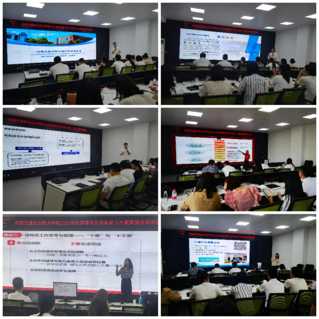 在新生开学之际,利用宝贵的两天时间充电,辅导员老师们纷纷表示受益良多,通过培训努力做到思想上有收获、工作上有提高、学术上有水平、品德上做表率,切实做到大学习大培训大练兵大提升,为日后扎实高效开展好辅导员工作打下坚实的基础!