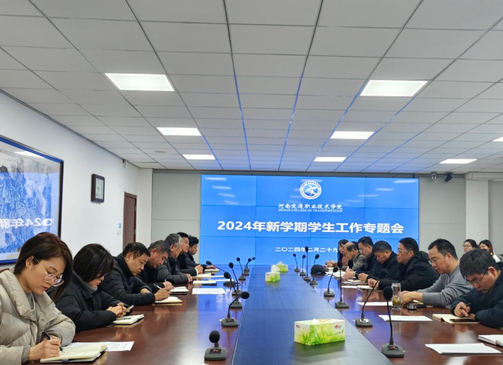 会议还就新学期学生返校、辅导员队伍建设、劳动素质教育、校运动会筹办等工作进行了安排部署,向各院(系)下发了《关于开展春季学期“五个一”收心活动的通知》和《河南交通职业技术学院2024年学生工作要点一览表》。