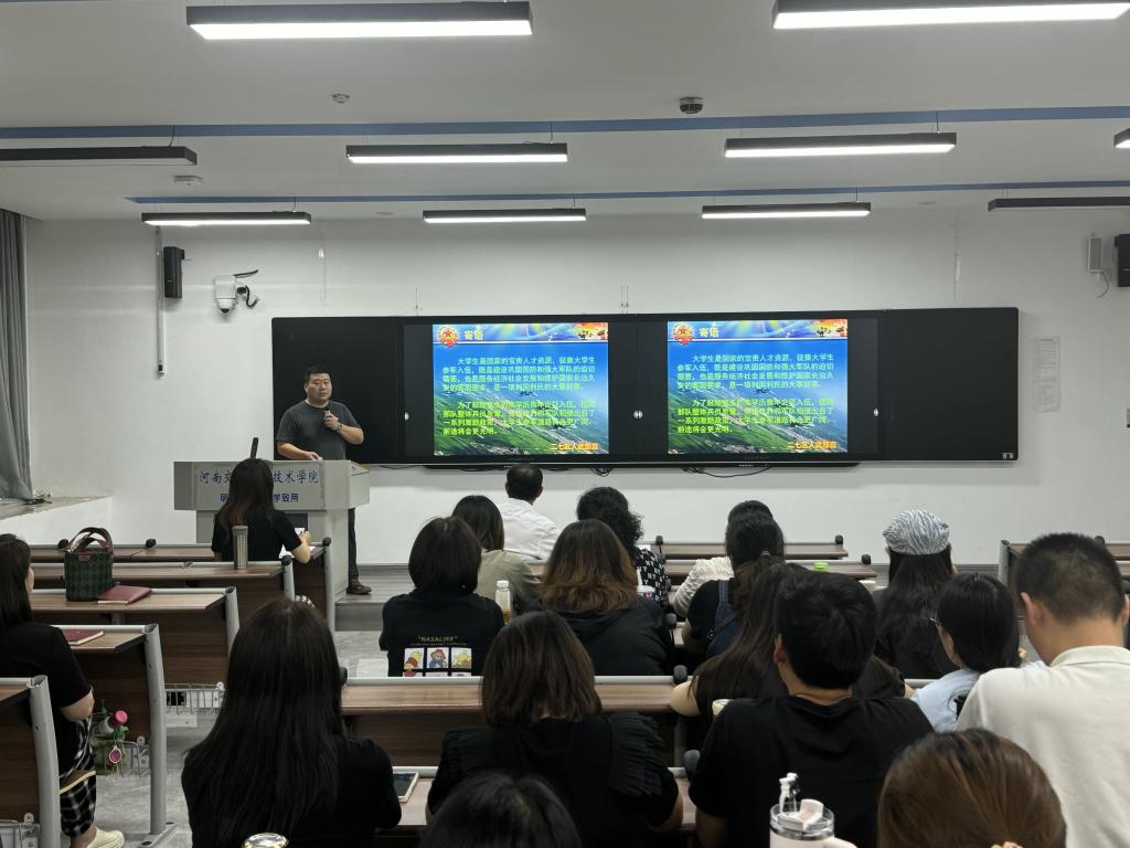 培训中,张震解读了《河南交通职业技术学院劳动教育实施方案》,介绍了我校实施劳动实践的背景。相关负责老师分别围绕“劳动实践课简介及规定”“大学生心理危机预防与干预”“民族宗教政策法规宣讲”和“大学生征兵入伍政策解读”等主题进行授课,为大家提供多元化的学习平台。全体辅导员还共同重温了高校辅导员誓词。