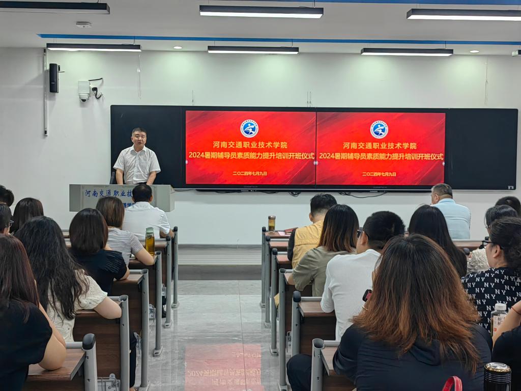7月9日,由学生工作部主办,河南交院明德尚行辅导员工作室承办的2024年暑期辅导员素质能力提升培训班在郑东校区举行。工会主席朱学军出席开班仪式并致辞,各院(系)组织员、团总支书记、一线辅导员参加开班仪式,开班仪式由学生工作处处长张震主持。