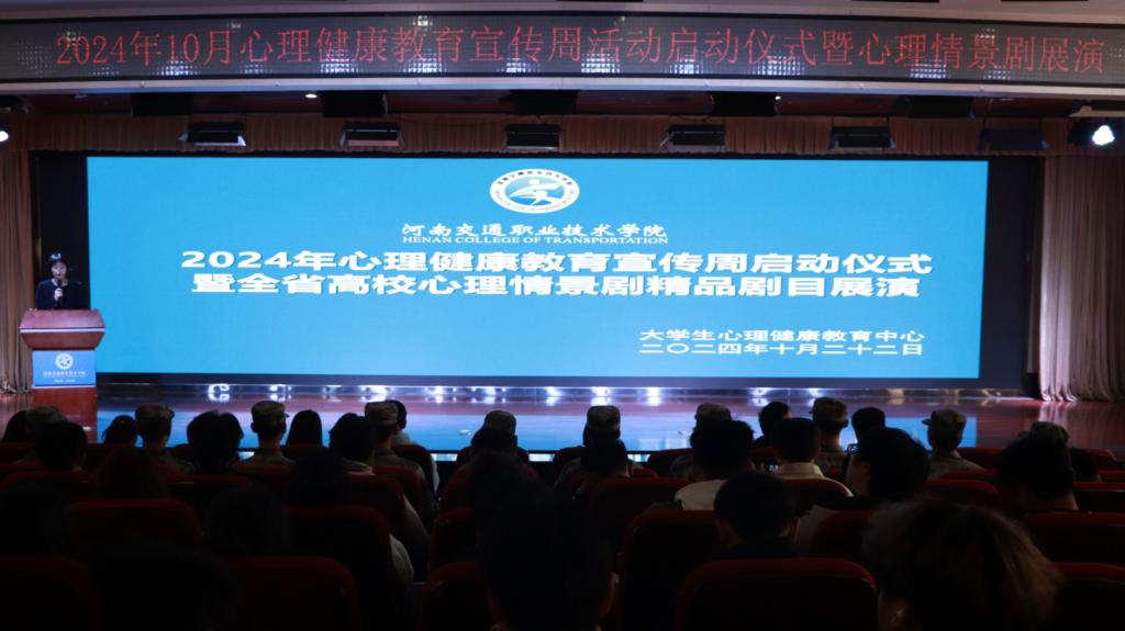 大学生心理健康教育中心代表宣布心理健康宣传周启动。现场全体成员共同观看了全省高校心理情景剧精品剧目现场展演。这些剧目以情景剧的形式生动地展现了大学生在成长过程中面临的各种心理挑战,以及他们如何勇敢面对、积极解决,给现场师生带来了深刻的启示。